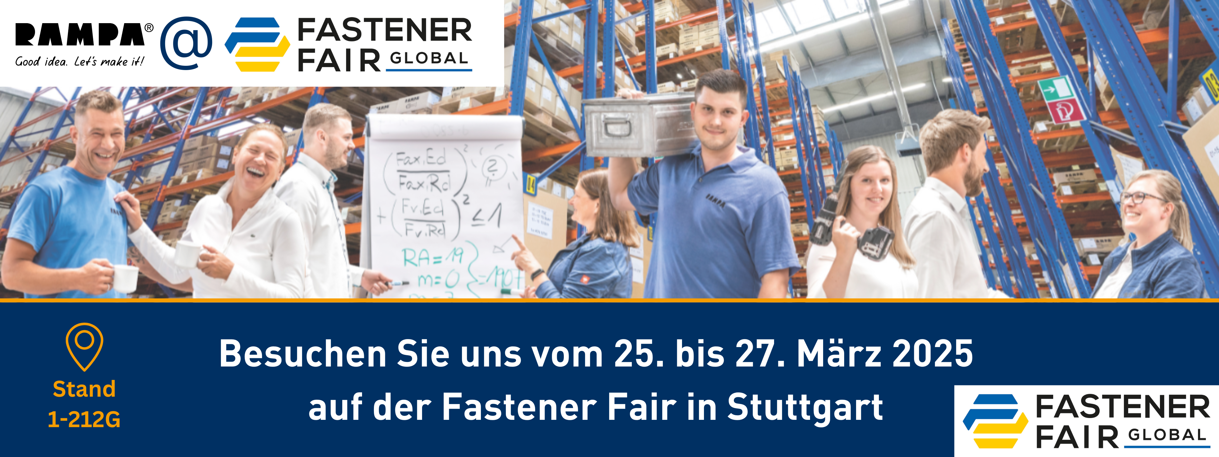 Wir möchten Sie herzlich zu einem Besuch am RAMPA®-Stand auf der Fastener Fair 2025 vom 25.-27.03.2025 in Stuttgart einladen.