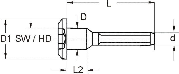 RAMPA-Flachkopfschrauben Typ KFS mit Innensechskant, Führungsschaft und dekorativem Flachkopf für sichtbare Verbindungen.