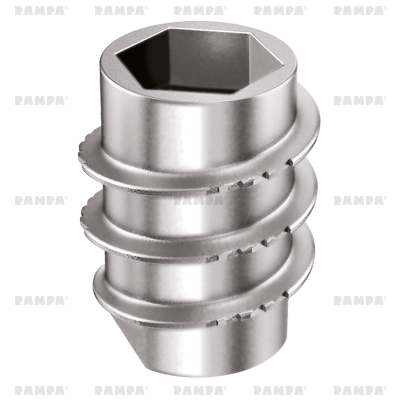 RAMPA-Muffen Typ SKZZ hergestellt im Zinkdruckgussverfahren mit Innensechskant und gezahnten Gewindeflanken. Hinweis: Teile aus Zinkdruckguss weisen abnehmende Haltekräfte und einen verkürzten Produktlebenszyklus auf.