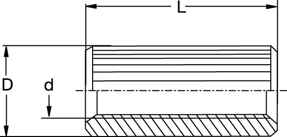 RAMPA-Rändelmuttern Typ RM, die als Dübel in vorgebohrte Löcher eingeschlagen und eingeleimt werden.