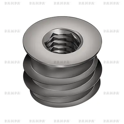 The new RAMPA type SKD30K insert with its 30° external thread is the ideal insert for use in thin wood materials such as seat shells. It replaces our previous type D and DVZ insert. The new SKD30K inserts not only have a continuous internal thread, but also an integrated hub, which makes screwing in easier.