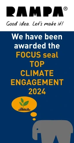 RAMPA has once again succeeded in having our commitment to climate protection in 2024 awarded the TOP CLIMATE ENGAGEMENT seal by FOCUS. This is the second year in a row that we have received this recognition.