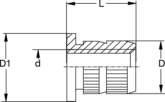 Inserts à enforcer RAMPA type TS avec collerette, filetage intérieur continu et tige cannelée. Permet un positionnement fiable dans le processus de montage.