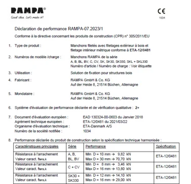 Avec agrément de construction ETA-12/0481 + CE1034
