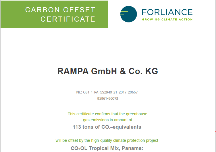 Certificat de compensation carbone de RAMPA pour 2021 (EN)