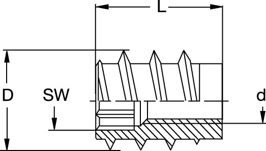RAMPA mufa typ SK z gniazdem sześciokątnym i nasadką prowadzącą do uproszczonego wkręcania w zastosowaniach w drewnie i tworzywach sztucznych.