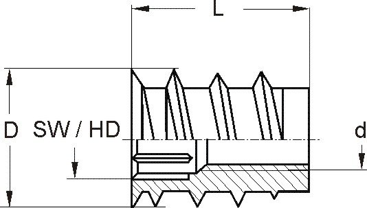 RAMPA mufa typ SKD z kołnierzem, gniazdem sześciokątnym i nasadką prowadzącą do różnych gatunków drewna, materiałów drewnopochodnych i tworzyw termoplastycznych.