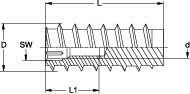 RAMPA mufa typ SKL330 z gniazdem sześciokątnym, nasadką prowadzącą i opatentowanym 3-zwojowym gwintem zewnętrznym do szybszego wkręcania w drewno, materiały drewnopochodne i tworzywa termoplastyczne. Z aprobatą techniczną ETA i certyfikatem CE do obliczania wartości wyrywania w drewnie. Nadaje się do podnoszenia ciężkich ładunków.