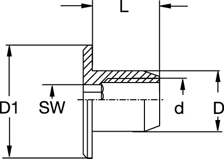 RAMPA nakrętka okrągła typ RF z gniazdem sześciokątnym, otworem przelotowym do gwintu wewnętrznego i ozdobnym łbem płaskim do widocznych połączeń.