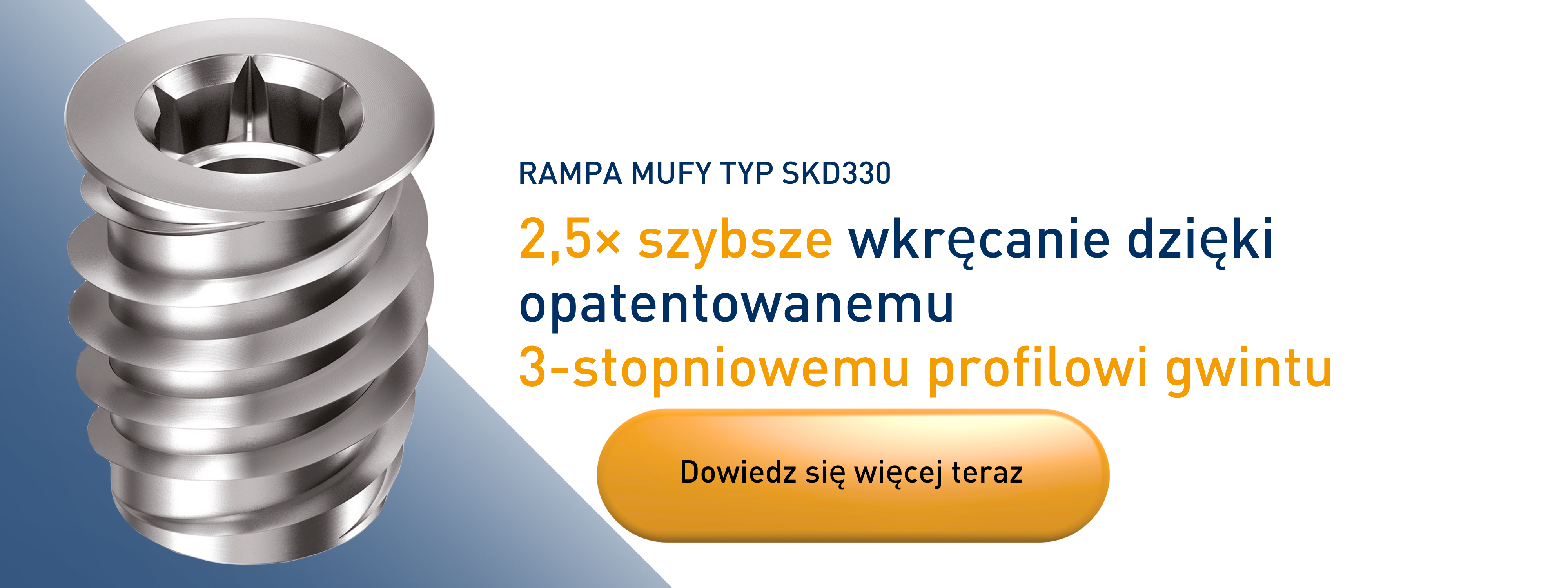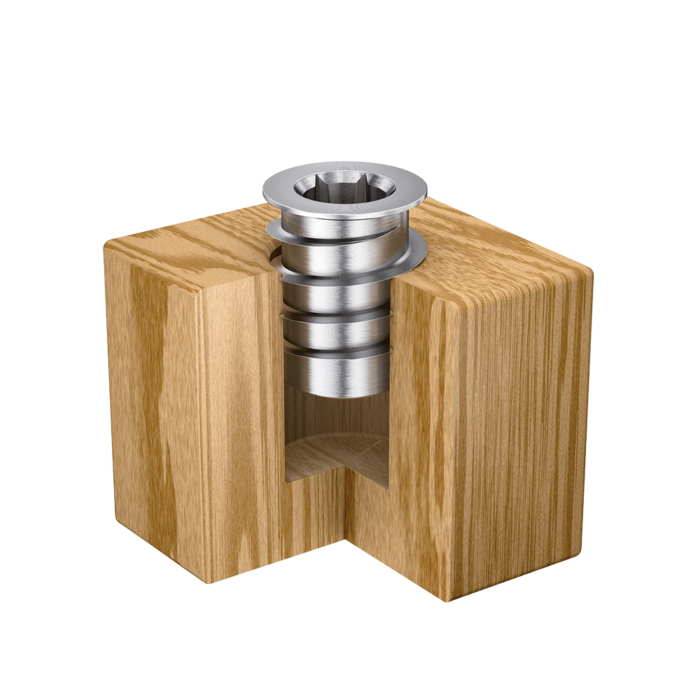 RAMPA mufa typ SKD330 z kołnierzem, gniazdem sześciokątnym, końcówką prowadzącą i opatentowanym 3-zwojowym gwintem zewnętrznym do szybszej obróbki poprzez prostopadłe wkręcanie. Najwyższe możliwe wartości wyrywania w różnych gatunkach drewna, materiałach drewnopochodnych i tworzywach termoplastycznych.Dane producenta: RAMPA GmbH & Co. KG Auf der Heide 8 21514 Büchen Niemcy E-Mail: mail@rampa.com