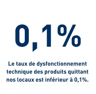 Afin de tenir notre promesse de qualité optimale et de fiabilité à long terme, nous contrôlons en permanence non seulement nos produits, mais aussi nos processus d'exploitation internes.