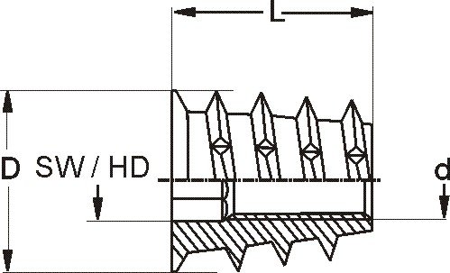 Inserts RAMPA type SKDZ sont fabriqués en zinc moulé avec collerette de fermeture, six pans creux et filetage extérieur conique. Remarque : les pièces en zinc moulé présentent des forces de retenue décroissantes et un cycle de vie du produit raccourci.